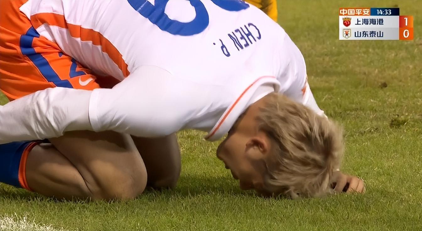 在浪費這一個空門機會後,陳蒲跪地懊惱。事實上,這個賽季因爲吳興涵受傷,陳蒲獲得了不少出場機會,他此前27次出場打進了8球。但這次空門不進,真的讓泰山球迷和主帥郝偉都絕望了。