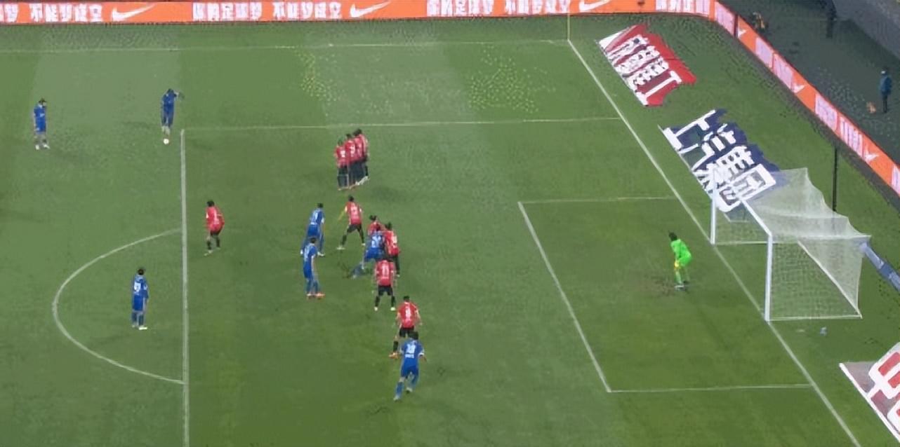 上半場補時階段,胡荷韜禁區左側怒射打在了邊網上。