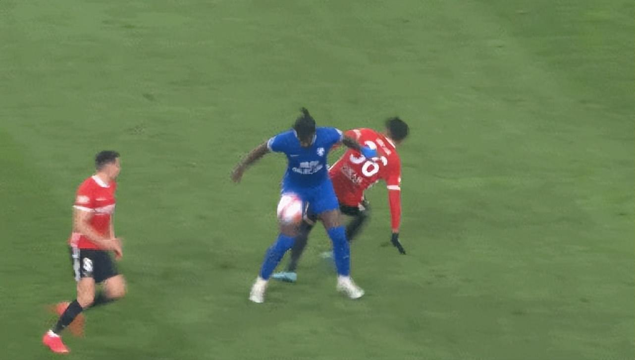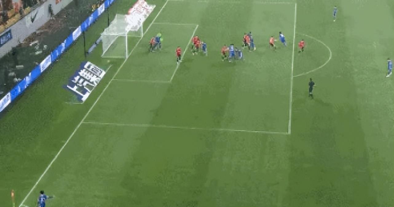第63分鐘,馬爾康在禁區前沿被劉濤放倒,主裁判第一時間判的是點球,但隨後改判爲定位球。