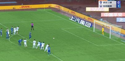 第33分鐘,鄧涵文造點,戴維森主罰點球命中,武漢三鎮扳平1-1。