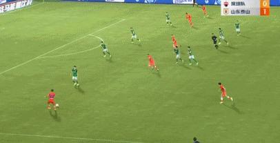 第38分鐘,克雷桑在禁區線外起腳打門,皮球貼着右立柱飛進球門,山東泰山1-0領先。