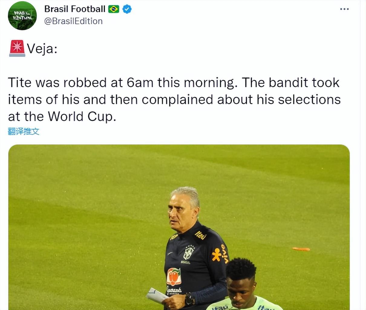 昨日巴西媒體《環球報》稱,前巴西主帥蒂特凌晨6點散步時遭搶劫,還被拽耳朵以及被噴世界盃帶隊成績差。而蒂特的發言人在今日回應稱,蒂特被搶劫是真的,其他都是謠言。