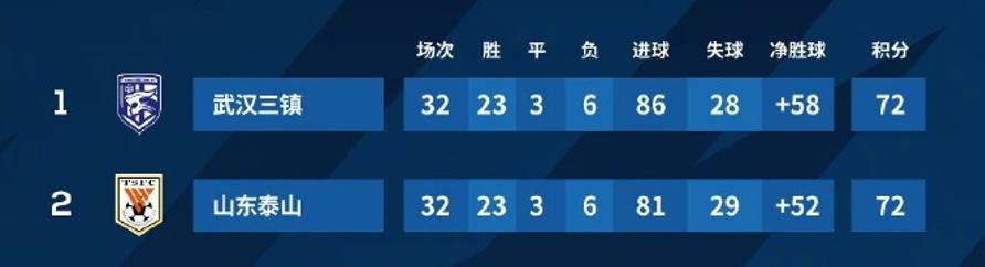 武漢三鎮或者山東泰山,在賽季的後半段,都有主動權掌握在手中的時刻,但都自己“犯錯”,導致爭冠的局面依舊膠着。從目前來看,淨勝球或許將成爲決定冠軍歸屬的重要數據——兩隊本賽季的兩次交手都打成了平局,淨勝球方面,武漢三鎮目前多泰山6個。