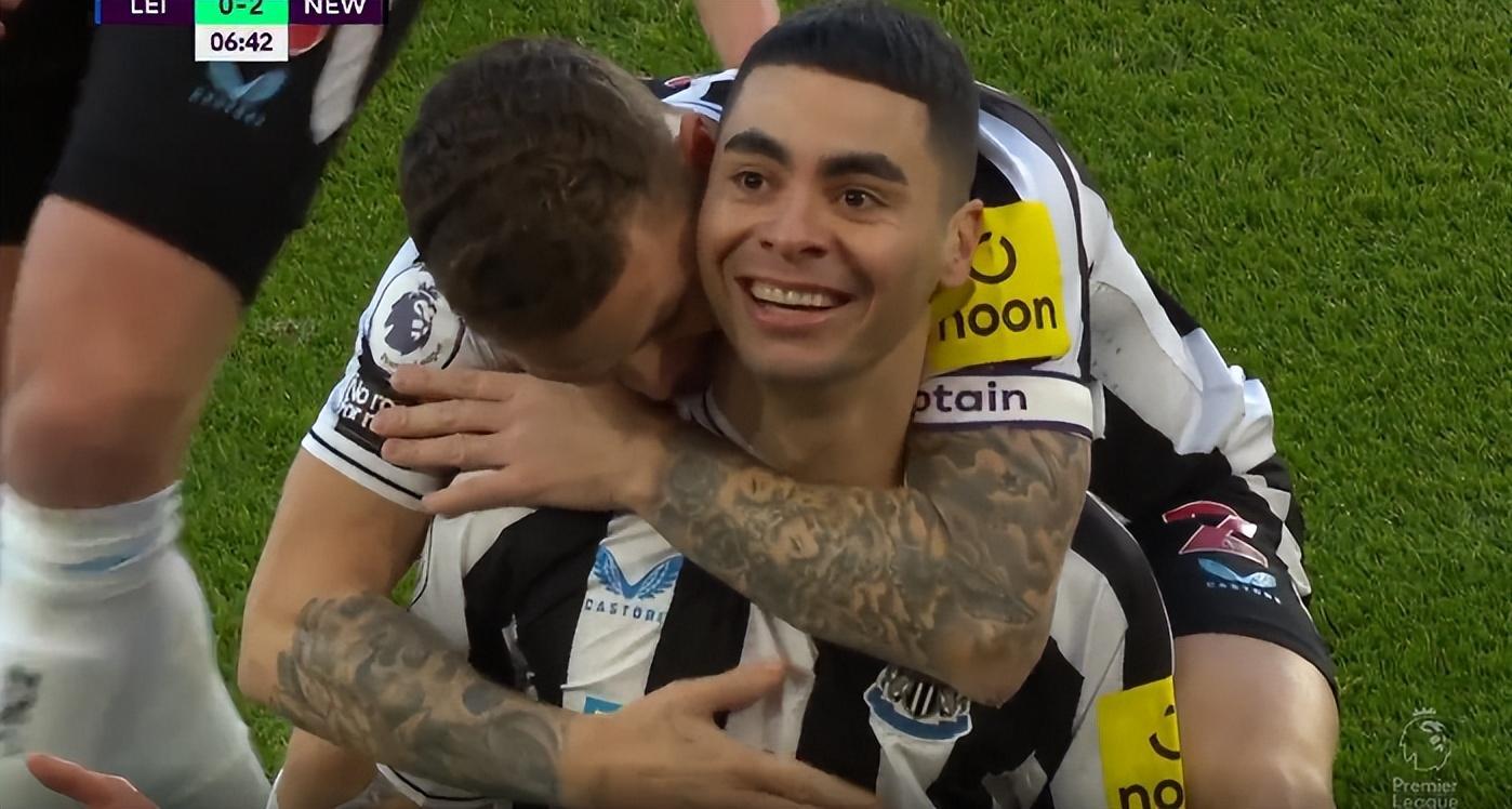 第7分鐘,阿爾米隆跟吉馬良斯打了一個撞牆配合,最終在禁區右側輕鬆低射破門,2-0;根據數據統計,這是紐卡斯爾近15年來首次在英超開場7分鐘打進2球。