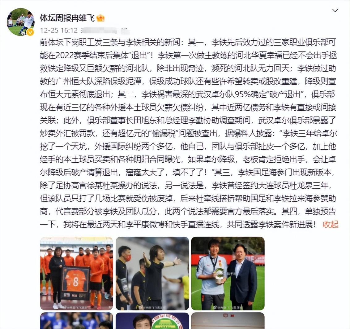 如今李鐵親手帶隊衝上中超的兩支球隊也要降級了,河北隊時隔7年降級,而武漢卓爾則是時隔4年降級。當然,根據前央視和體壇週報記者冉雄飛的消息,李鐵待過的這三傢俱樂部,不只是降級這麼簡單,還很有可能同時宣佈解散。
