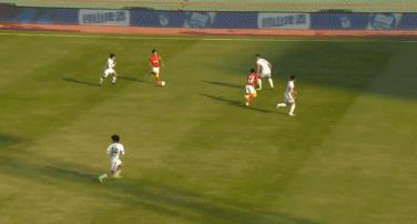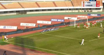 第56分鐘,賀一然長傳吊進禁區,廣州隊後衛劉浪舟冒頂了,程長城門前墊射破門,長春亞泰將比分改寫爲2-1。