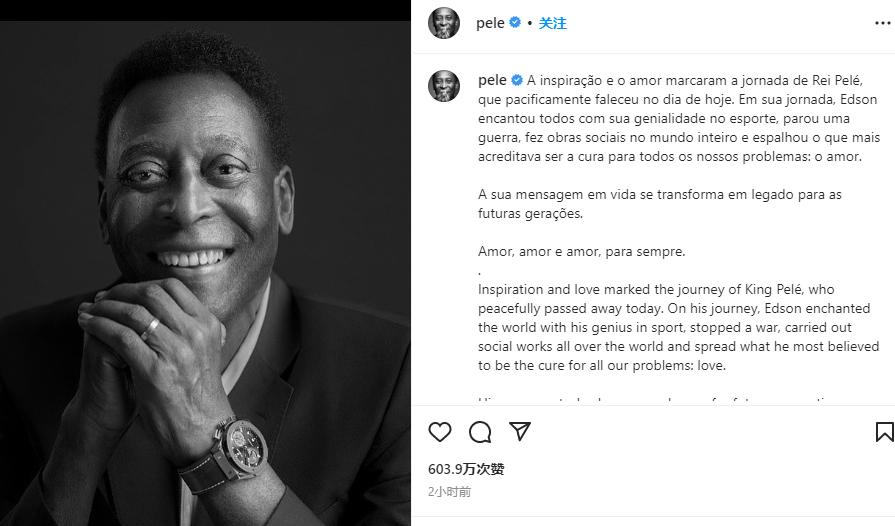 北京時間12月30日凌晨3點,家屬利用貝利的個人社交賬號宣佈,貝利因病去世,享年82歲。