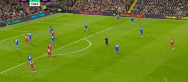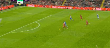 第38分鐘,阿諾德右路起球傳中,法斯在門前倒地攔截,結果他並沒有踢正部位,皮球經過折射後劃出一道詭異弧線,最後吊進了球門,利物浦扳平1-1。