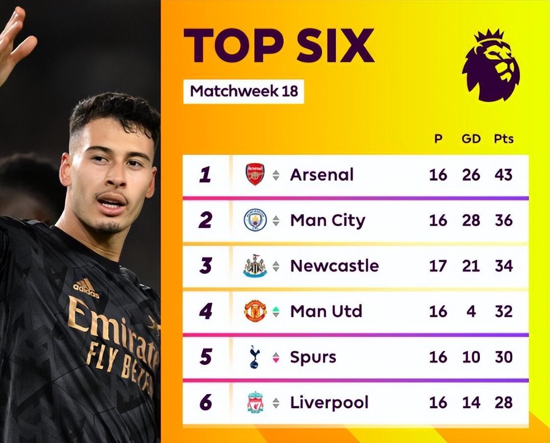 在英超第6輪作客1-3不敵曼聯後,阿森納最近10輪聯賽9勝1平保持不敗,瘋狂搶下了28分。由於曼城本輪意外丟掉2分,所以現在他們在積分榜上已經擴大領先優勢至7分。