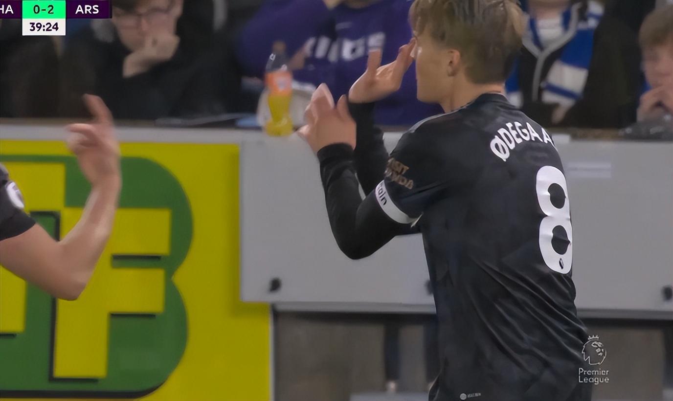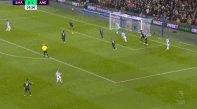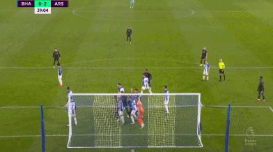 第38分鐘,阿森納開出右側角球,布萊頓頭球解圍,厄德高在禁區中路凌空抽射破門,阿森納擴大比分至2-0。