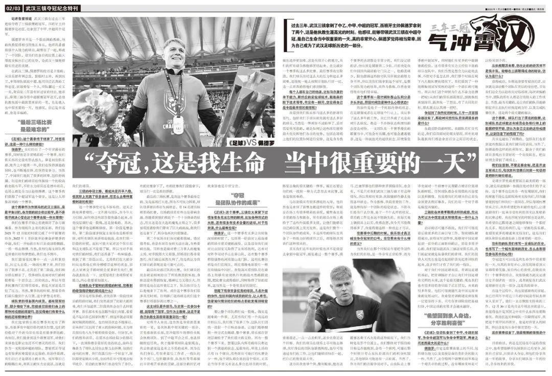 奪冠這天可以說是我生命當中很重要的一天,我真的非常開心,我在現場看到大家都帶着笑臉,發自內心的喜悅,在收穫我們一個賽季的付出。我能夠成爲武漢足球歷史開創者的一部分,或者說是我們武漢足球新歷史的一部分,這是我的榮幸。