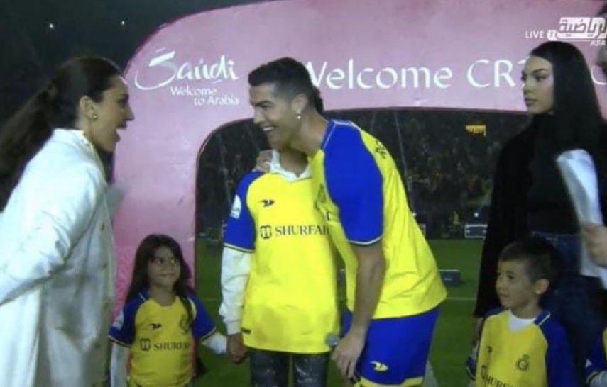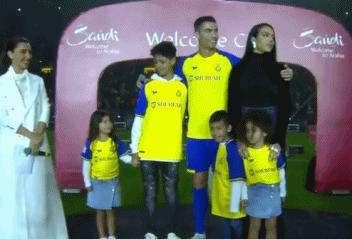 在利雅得勝利的亮相儀式上,C羅一家六口出席,除了剛出生的女兒沒在現場。