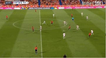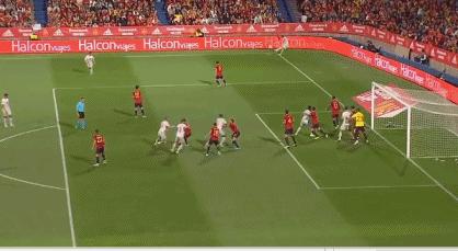 第55分鐘,阿森西奧在中場加速突破到禁區前沿後分邊,阿爾巴跟進爆射破門,西班牙扳平1-1。