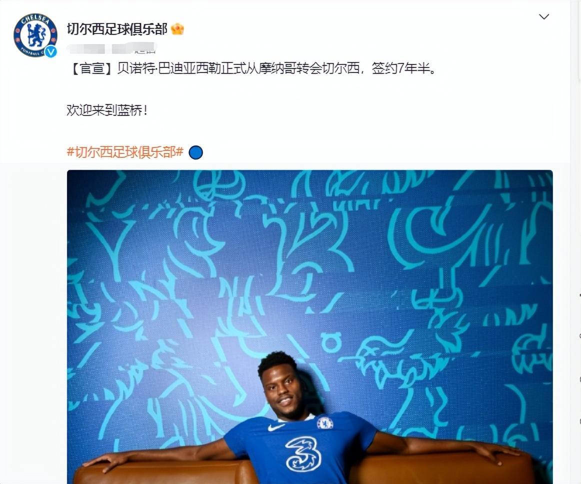 切爾西官方宣佈,球隊正式從摩納哥簽下21歲法國中衛巴迪亞西勒,合同期限爲7年半。羅馬諾稱,包括浮動條款在內,切爾西購買巴迪亞西勒的總價達到了3800萬歐元。
