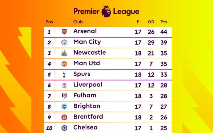 老闆身家達到3200億英鎊的土豪球隊紐卡斯爾仍然坐穩第3,不過他們在積分上已經被4連勝的曼聯追平,而且他們還比曼聯多賽一場。