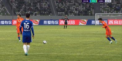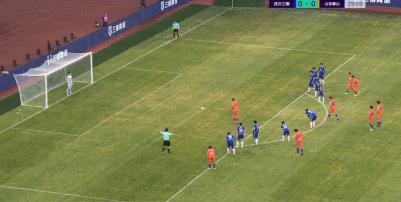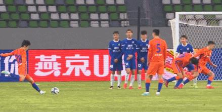 第43分鐘,孫準浩主罰任意球直掛死角破門,山東泰山擴大比分至2-0。