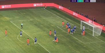 第55分鐘,孫準浩開出左側角球,莫伊塞斯頭球破門,山東泰山3-0領先。