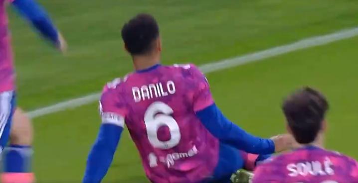 第86分鐘,帕雷德斯挑傳,小基耶薩橫掃到門前,達尼洛打空門得手,尤文1-0領先。