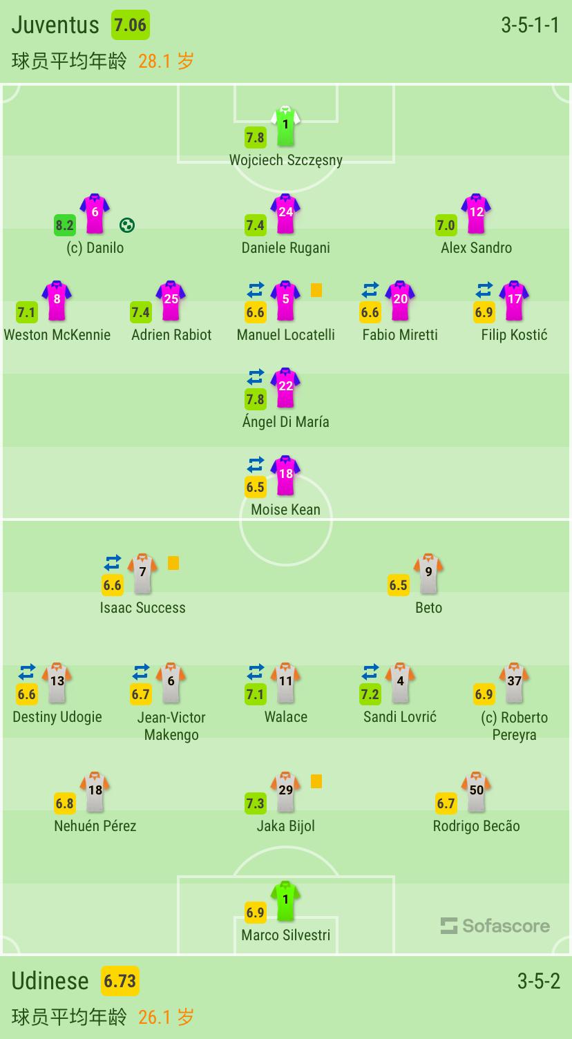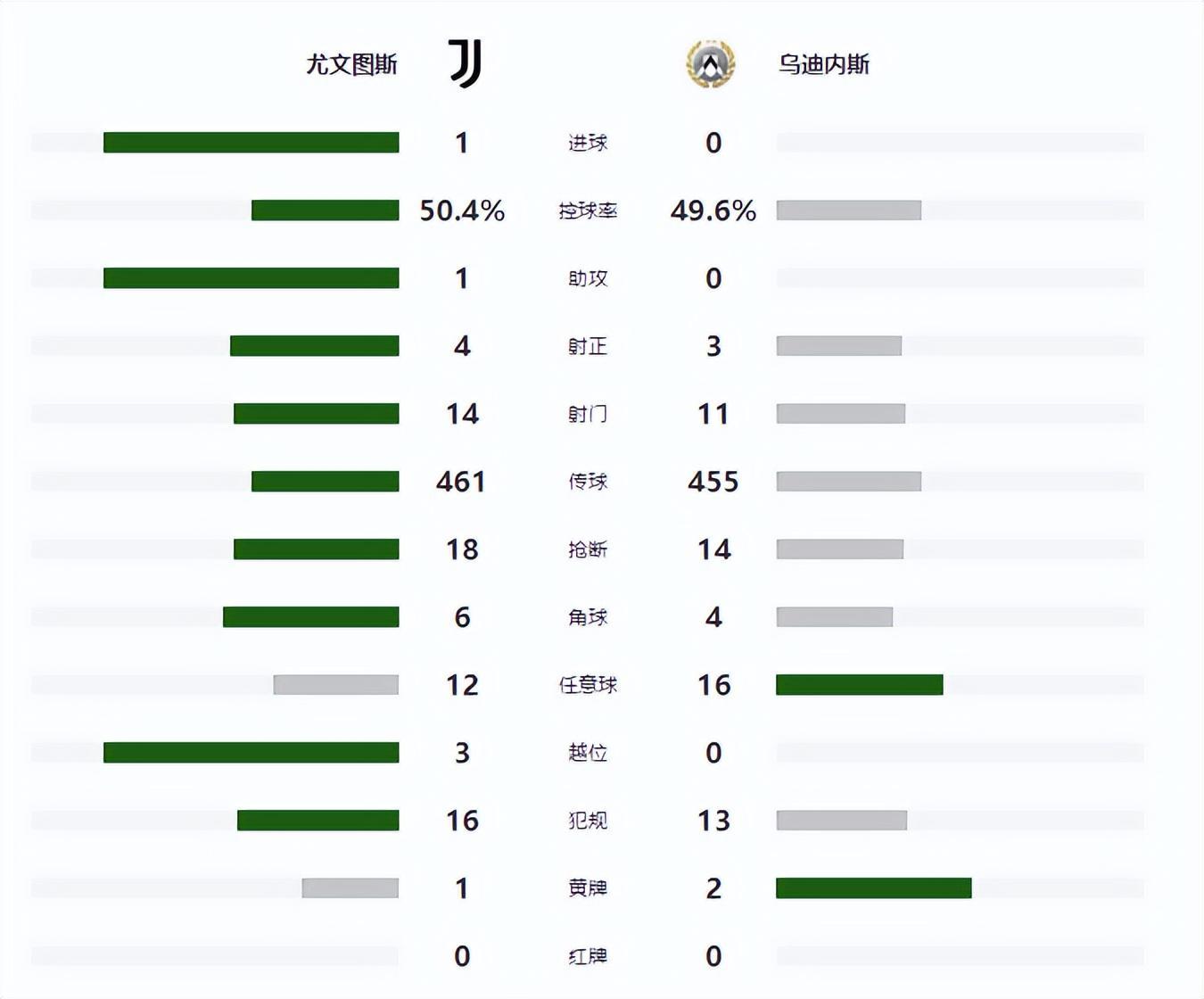 此後,雙方均無法再次改寫比分,最終尤文1-0擊敗烏迪內斯。