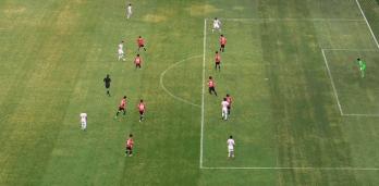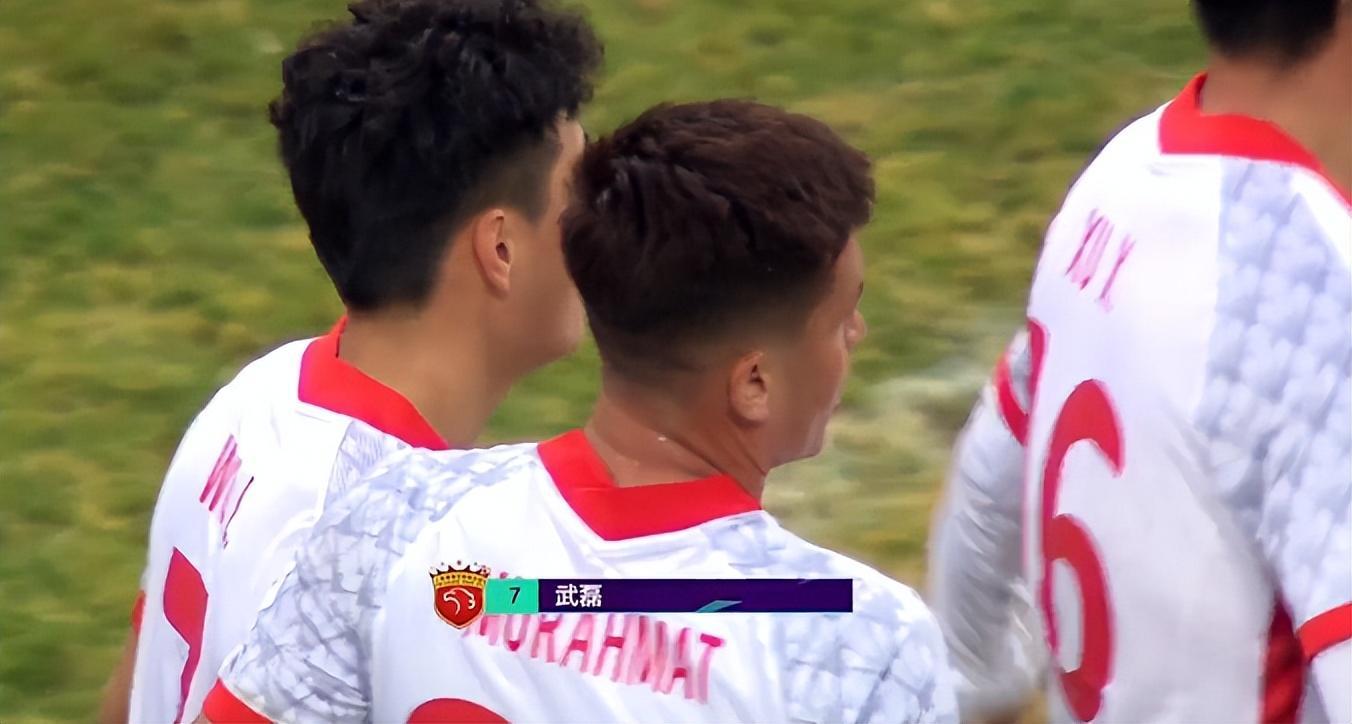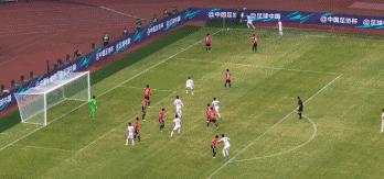 第4分鐘,買提江左路傳中,武磊在後點近距離頭球攻門偏出。