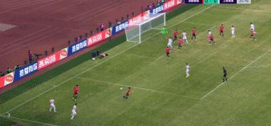 第52分鐘,門將冉偉楓趟大了,李聖龍搶射沒能把球打進。