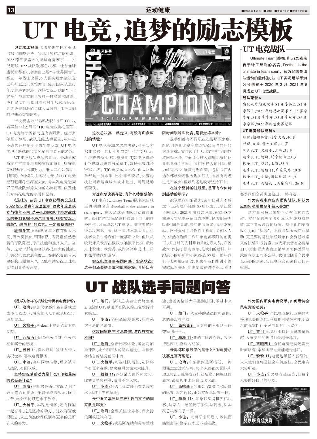 UT電競戰隊成功的背後,是戰隊成員在打拼事業與照顧家庭的同時,堅守電競理想的付出和努力。繼去年總決賽後,《足球》報繼續關注實況電競,與UT電競經理翱翔冬雪深度交流,爲實況電競迷揭開冠軍戰隊鮮爲人知的心路歷程,以及他們對實況電競的熱愛和堅持。