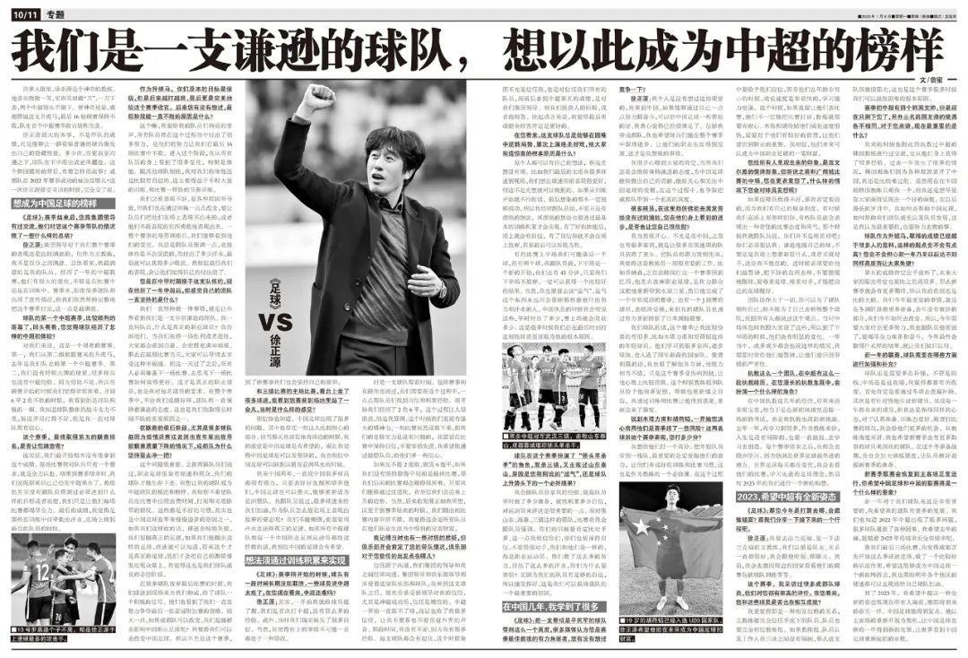 徐正源:我個人是沒有想過這份榮譽的,我來到中國,如果能夠通過自己一點點努力跟奮鬥,可以給中國足球一些幫助的話,我真心覺得已經很滿足了。包括我帶成都隊,我也希望球員們能在整個賽季中取得進步,讓他們的職業生涯得到發展,這纔是我想做的事情。
