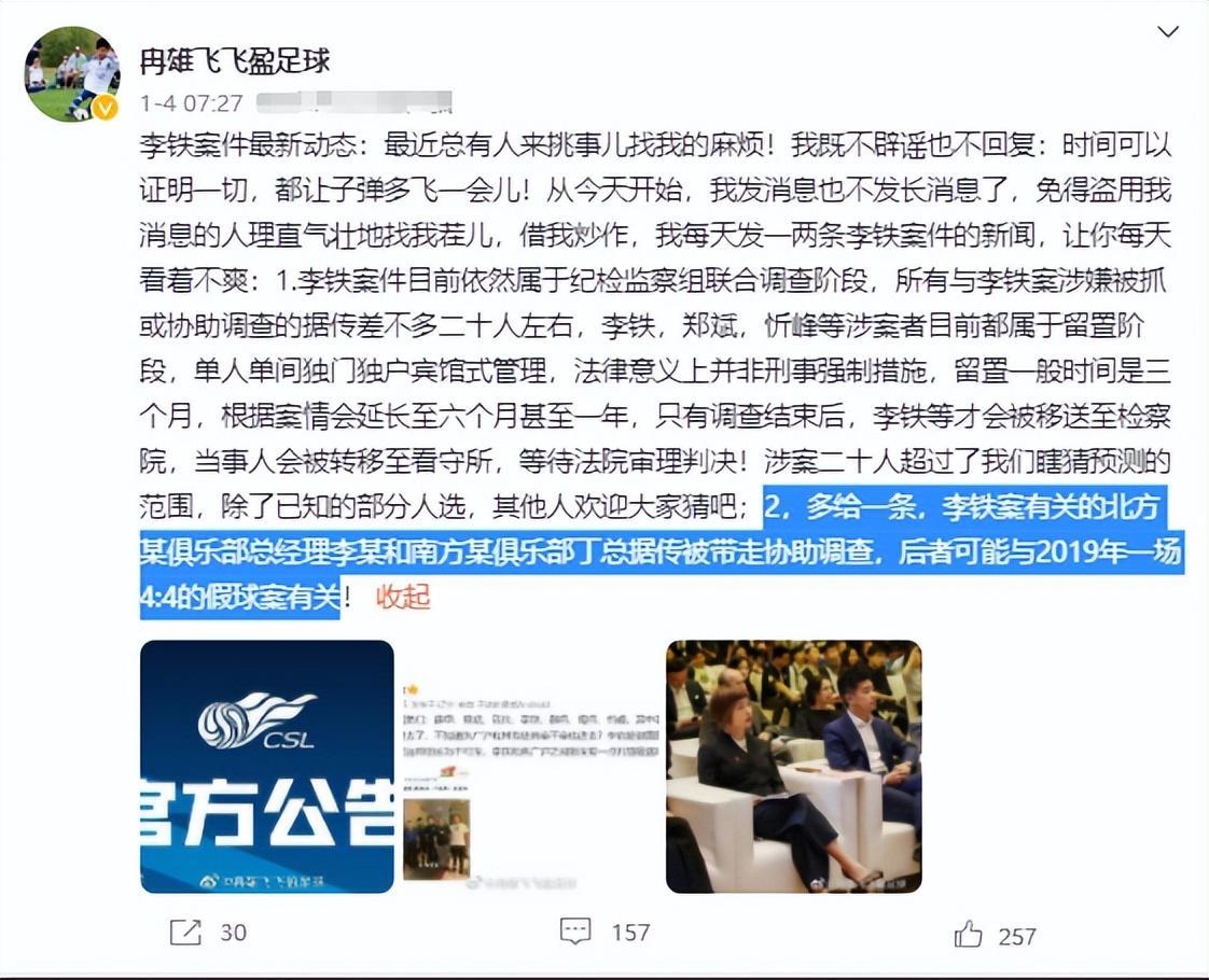 前央視記者冉雄飛就暗示過李明和丁勇兩位中超老總被帶走調查,但丁勇還發朋友圈闢謠,不過丁總這次帶走應該是實錘了。