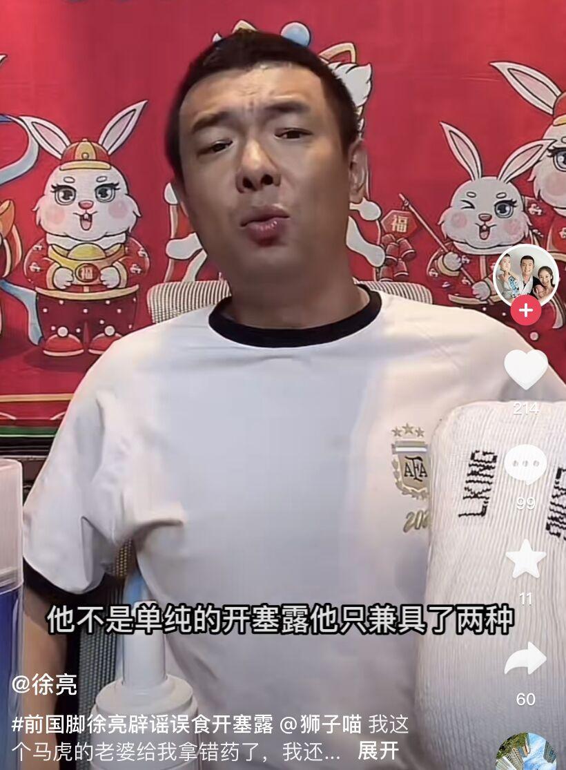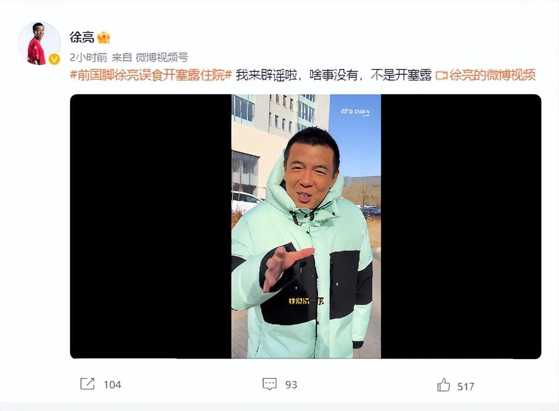 北京時間1月14日下午,前國腳徐亮在社交平臺闢謠,他並沒有誤食“開塞露”。