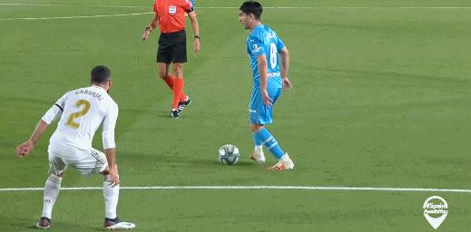 案例1:皇馬VS瓦倫西亞,戈麥斯在越位位置站着不動,但影響了在他身後的瓦拉內做出攔截動作,主裁判判定瓦倫西亞的進球無效。