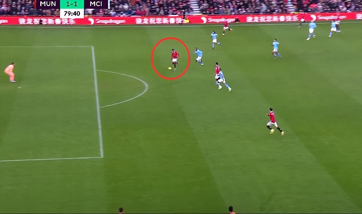 跟上述兩個案例相比,拉什福德是否明顯影響到了防守球員的處理球動作?B費認爲沒有曼城球員接近拉什福德,所以拉什福德沒有對曼城防守構成影響。