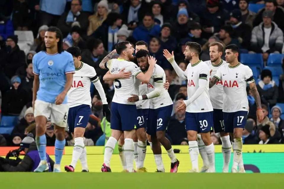 激烈但難言精彩的上半場,高潮都在40分鐘之後,哈蘭德短時間先後浪費一次單刀和一次對手門將洛裏已經幾乎投降的頭球攻門。浪費機會的後果誰都知道,熱刺在第45分鐘打破僵局,埃德松過於誇大但明顯不到位的傳球讓羅德里背了鍋,熱刺禁區內搶斷,庫盧塞夫斯基破門。2分零8秒之後,凱恩小角度爆射製造混亂,10天之前還傳聞與助教爭吵可能會被孔蒂掃地出門的埃默松頭球補射中的,熱刺兩球領先。