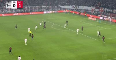 第37分鐘,薩內在中路把球轉移到左側,格納布里傳中,舒波-莫廷在門前繞開防守搶射破門,拜仁1-0領先。