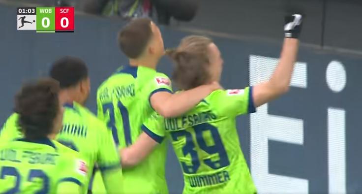 第59秒,維默爾1V2突入禁區低射破門,沃爾夫斯堡1-0領先。