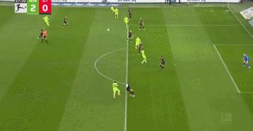 第56分鐘,弗萊堡後場開邊線球被搶斷,恩梅加助攻格哈特破門,沃爾夫斯堡4-0領先。