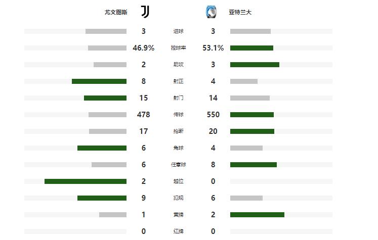 此後,雙方均無法再次改寫比分,最終尤文3-3戰平亞特蘭大。