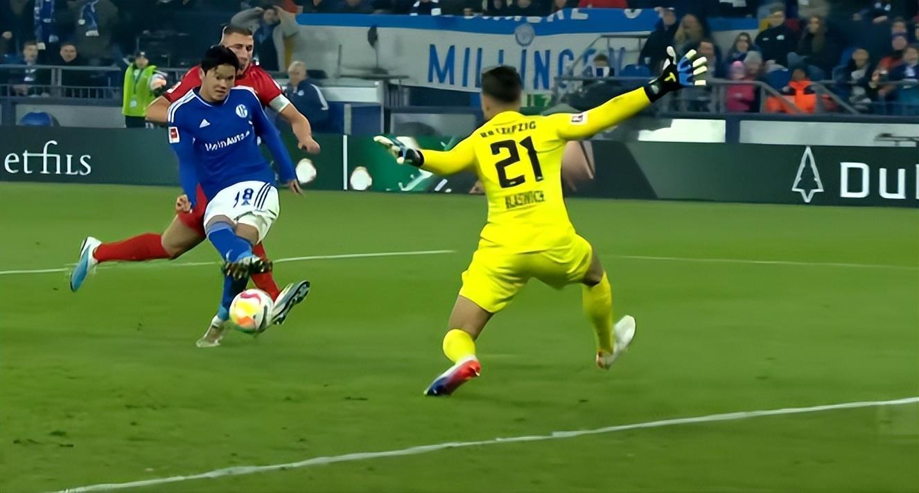 在沙爾克主場1-6不敵萊比錫的比賽中,22歲日本中場上月壯一郎打進了德甲首球。