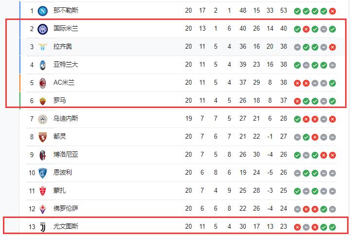 尤文最慘,原本一波連勝讓他們坐穩意甲前4,甚至看到一絲爭冠希望,但現在他們三輪不勝再加上被扣掉15分,本輪再下滑兩位,已經跌至意甲第13位。