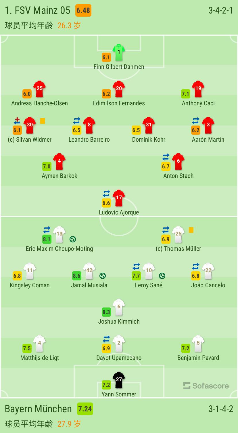此後,雙方都無法再次改寫比分,最終拜仁4-0擊敗美因茨晉級。