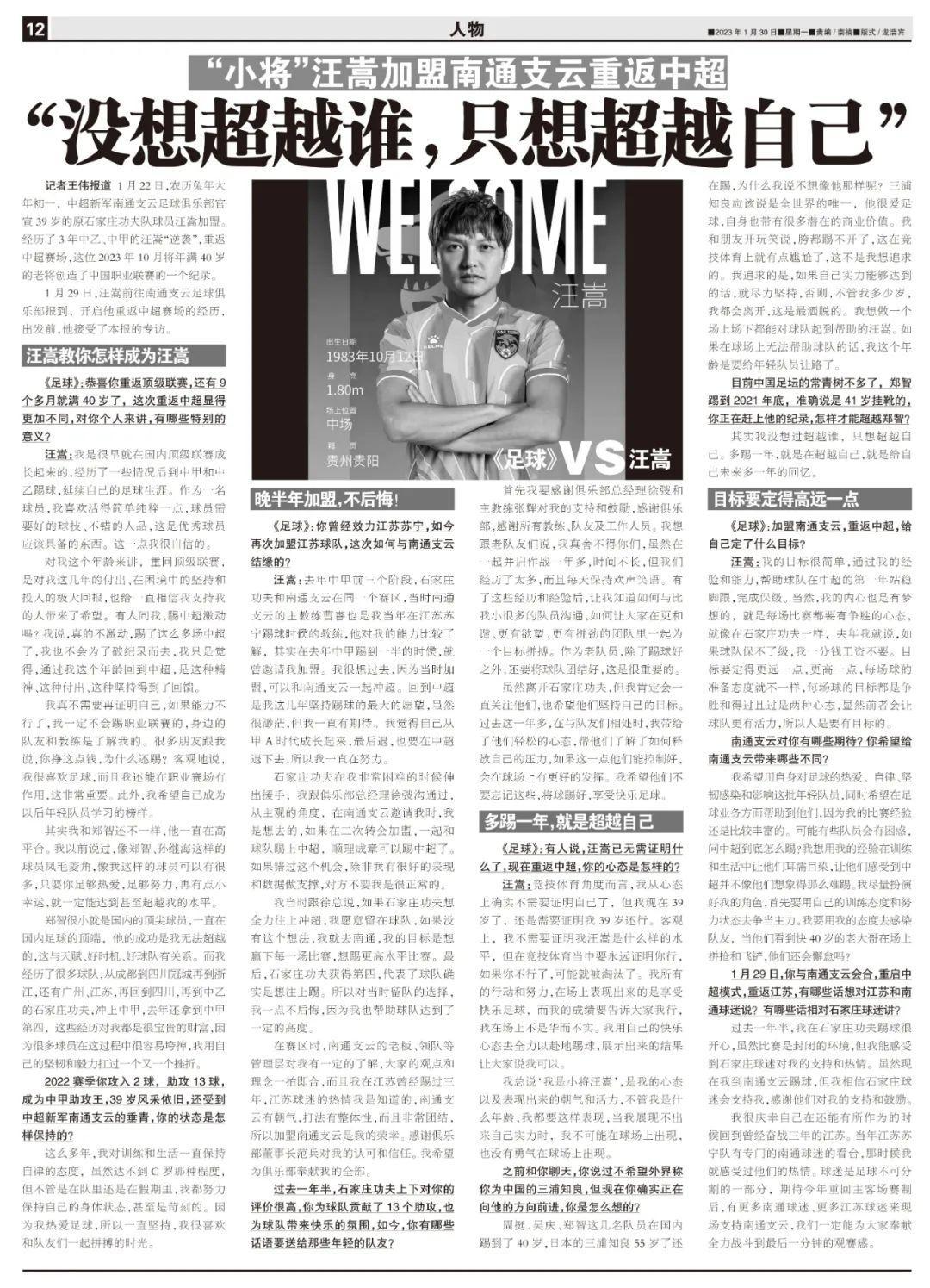 ◆《足球》:加盟南通支雲,重返中超,給自己定了什麼目標?