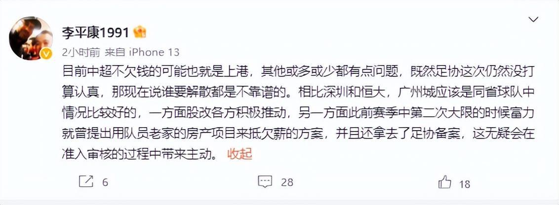 根據媒體人李平康的消息,目前中超不欠錢的可能也就只有上海海港了,其他的球隊或多或少都有點問題。
