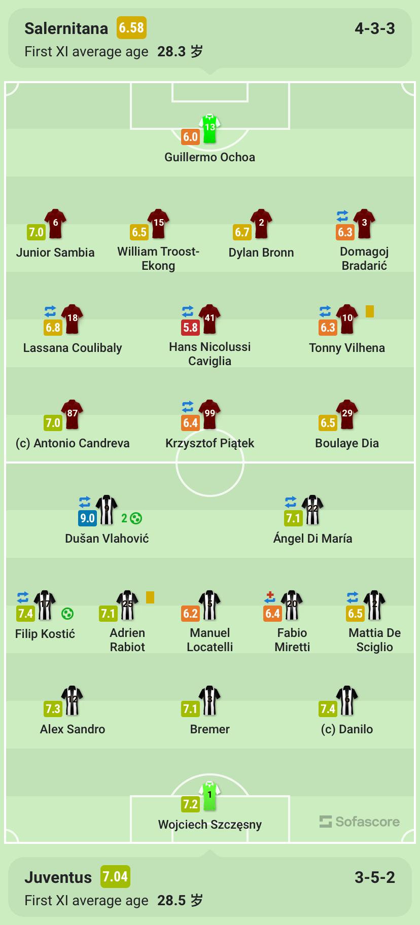 此後,雙方均無法再次改寫比分,最終尤文客場3-0擊敗薩勒尼塔納。