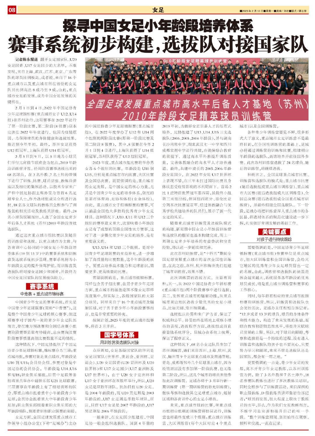 通過這次重點城市組比賽以及隨後的訓練營和選拔,以重點城市爲主體、與各青訓中心協同的中國女足小年齡段培養體系(10到15歲)中的賽事系統和訓練營及選拔系統初步顯現,賽事系統將爲小年齡段女足的提升保駕護航,而訓練營及選拔隊將對接女足國少和國青,並最終爲中國女足國家隊的發展提供助力。