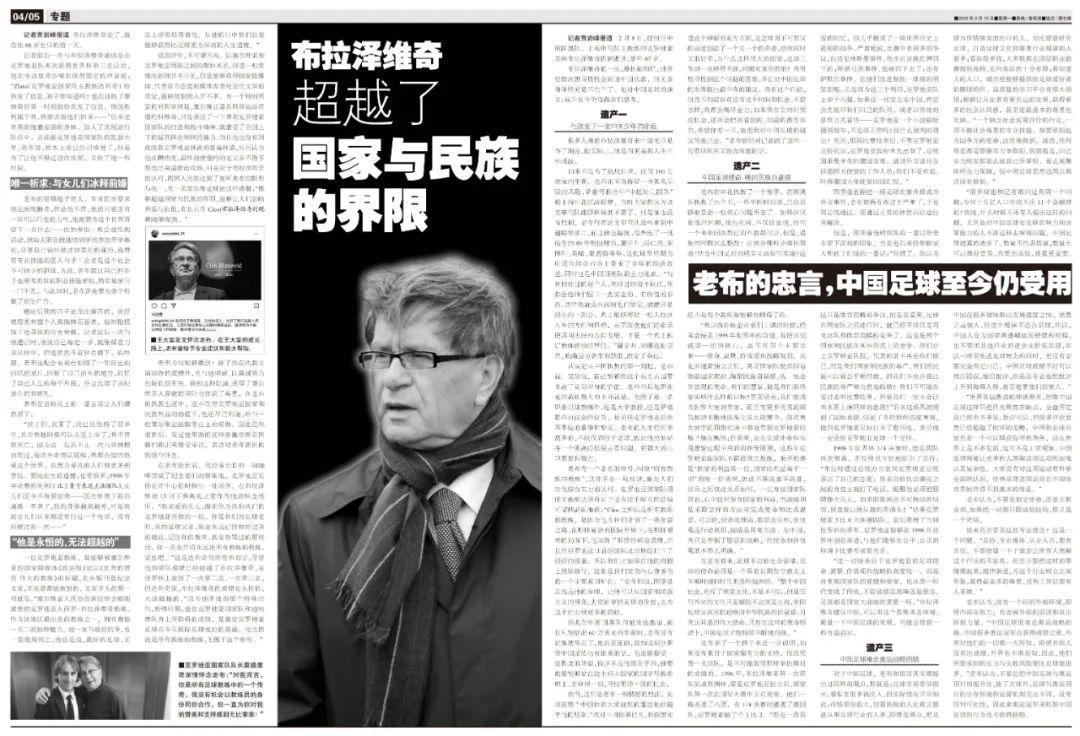 “我對中國仰慕已久。我很想知道這個神祕的東方古國,是怎樣用不可思議的速度創造了一個又一個的奇蹟,但我同時又很好奇,爲什麼這樣偉大的國家,足球工作卻一直停滯不前,問題究竟在哪裏?我很想尋找到這個問題的答案,並且對中國足球的發展提出最中肯的建議。我有這個自信,但我不知道我有沒有這個時間和機會。不管怎樣,我都會竭盡全力,如果我在位的時候沒機會,那我會把我看到的、知道的都告訴你,希望你有一天,能把我對中國足球的建議傳遞出去。”老布曾經對記者說了這樣一段看似玩笑又飽含深意的話。