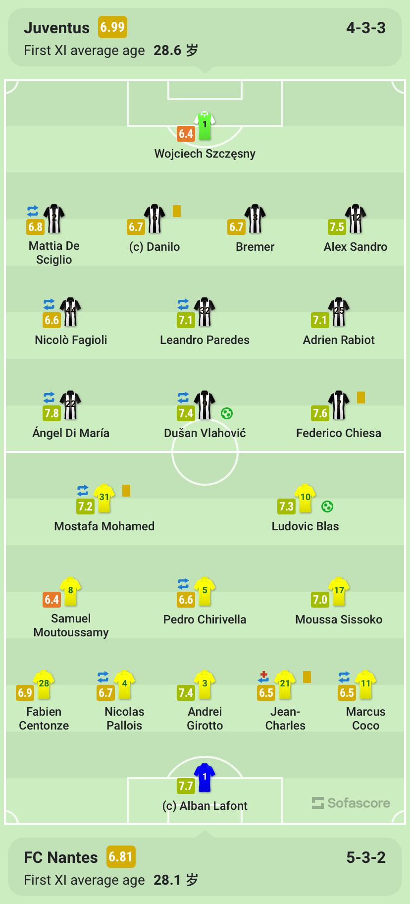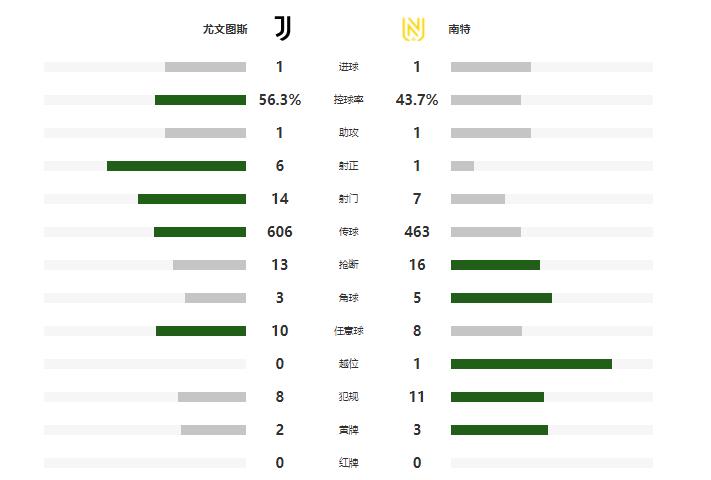 此後,雙方都無法再次改寫比分,最終尤文主場1-1戰平南特。