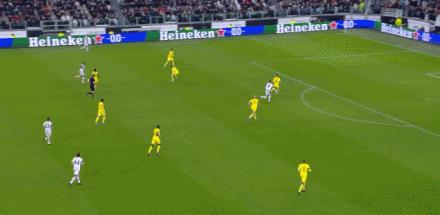 下半場補時第5分鐘,誇德拉多右路起球傳中,洛卡特利和布雷默兩人同時起跳爭頂,但沒能把球打在門框範圍內。