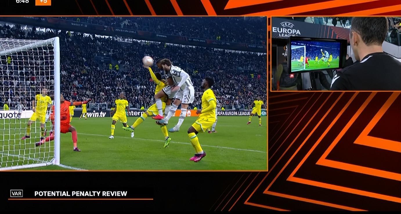 補時第8分鐘,主裁判在VAR的建議下看了錄像回放,關於剛纔洛卡特利的頭球攻門,南特球員疑似出現手球犯規情況,但最終主裁判確認不是點球。