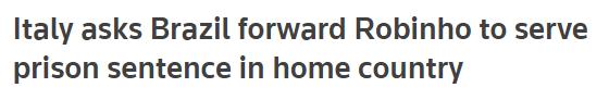 北京時間2月19日,聖保羅當地媒體援引巴西外交部的消息稱,在無法將羅比尼奧引渡至意大利服刑的情況下,意大利司法部門要求被判強姦罪成立的他在巴西服刑。
