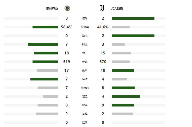 此後,雙方均無法再次改寫比分,最終尤文客場2-0擊敗斯佩齊亞。