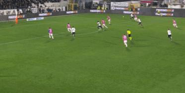 第82分鐘,斯佩齊亞開出右側角球,尼科拉烏頭球攻門,再次被佩林化解。